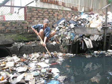 Nước sông ô nhiễm chuyển màu đen, rác thải trôi lềnh bềnh – nguy cơ gây bệnh cho con người rất cao.