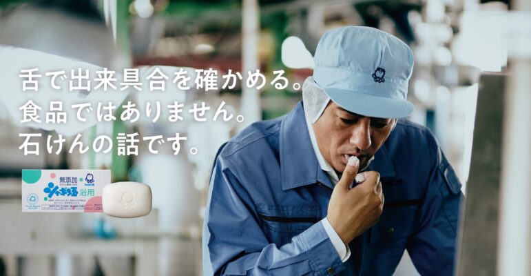 Tại nhà máy Shabondama, khi một mẻ xà phòng hoàn thành, nhân viên sẽ trực tiếp nếm thử sản phẩm. Việc này không chỉ giúp kiểm tra độ kiềm còn sót lại, mà còn xác nhận xà phòng đã “chín” hoàn toàn, không gây tổn hại khi sử dụng trên da người – kể cả với làn da mỏng manh của trẻ sơ sinh.