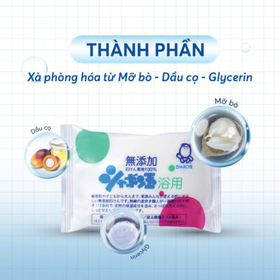 Khác với nhiều loại xà phòng công nghiệp chứa hương liệu và chất tẩy rửa tổng hợp, xà phòng Shabondama được làm từ 100% chất béo và dầu tự nhiên, với thành phần chính là mỡ bò và dầu hạt cọ. Nhờ sự tinh khiết trong nguyên liệu, sản phẩm không chỉ loại bỏ bụi bẩn mà còn giúp giữ lại độ ẩm cần thiết cho làn da.